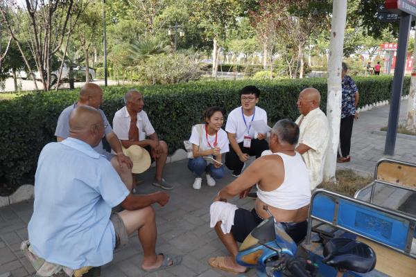 宣讲团成员聆听当地老党员对兰考的变迁 | 宣讲团成员认真聆听产业聚集区李主任相关介绍 |
