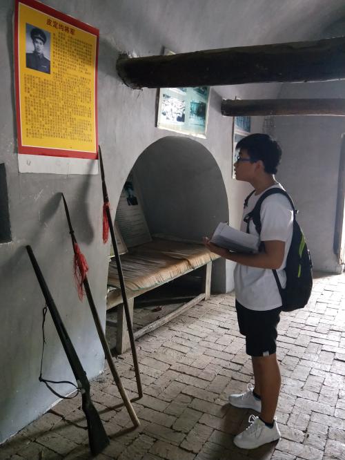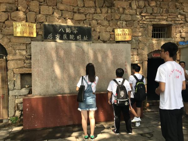 随后,小分队到达八路军后方医院旧址。在这里,小分队队员聆听了一位89岁的革命老人慎老先生讲述了抗日战争的红色故事,参观了当时抗日战争留下的遗物并了解了千年古橿树的来源和历程。小分队队员从老人口中得知了八路军后方医院的由来,也知道了当时有无数英雄受了伤来过这里,然后从这里走出并转战南北,直至取得全国的胜利。在实践过程中,小分队队员感受到了在实现中华民族伟大复兴中国梦的征程中大力弘扬红色文化并从中汲取昂扬奋进、团结拼搏的精神动力有着重要现实意义。
