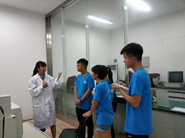 7月16日,团队成员走进河南省表界面科学实验室进行参观活动。简单地为队员们介绍了此次参观行程后,实验室李凤彩老师带领成员们参观了实验室展厅并详细介绍了实验室的创建历史及最近几年所取得的科技成果。随后团队成员参观了莱卡超薄切片机、超高效液相色谱质谱联用仪等仪器。李老师详细介绍了这些仪器的功能、使用方法及维护措施后表示,实验室许多设备都是向全校师生开放的,同学们如果在科研过程中需要借用实验室,可以积极联系学院申请,实验室老师也会对有使用需求的同学做出相应的指导。最后,李老师鼓励大家积极加入创新实验的行列,抓住机遇,坚持不懈,奋斗拼搏。