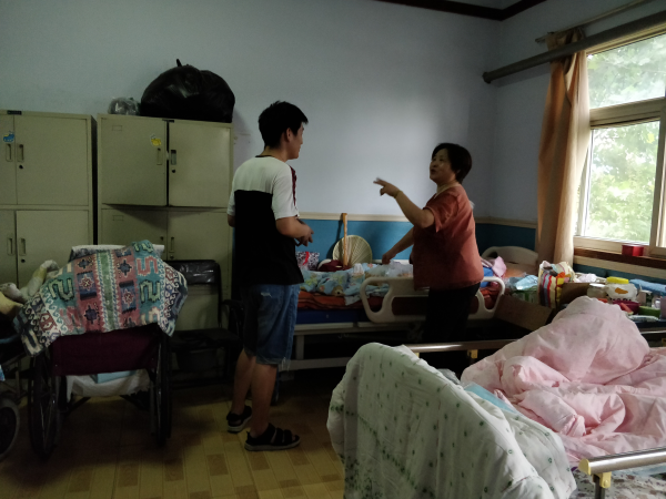 7月13日上午,团队成员到达老年公寓,在与院长的简单交流后,成员们分成了四个小组,分别前往不同的房间慰问老人。起初在老人面前有些成员还显得很拘谨,但后来个别性格开朗的成员带动了大家的热情。对于一些患有老年痴呆症等疾病的老人,成员们也耐心地和他们聊天,帮老人整理衣物、擦拭家具,还为他们表演了小节目,让这些在孤独中生活着的老人露出了开心的笑容。通过与老人们的交谈,成员们不仅了解了他们的生活状况,还了解了他们以前的经历,从中更懂得了他们对后辈的期望。