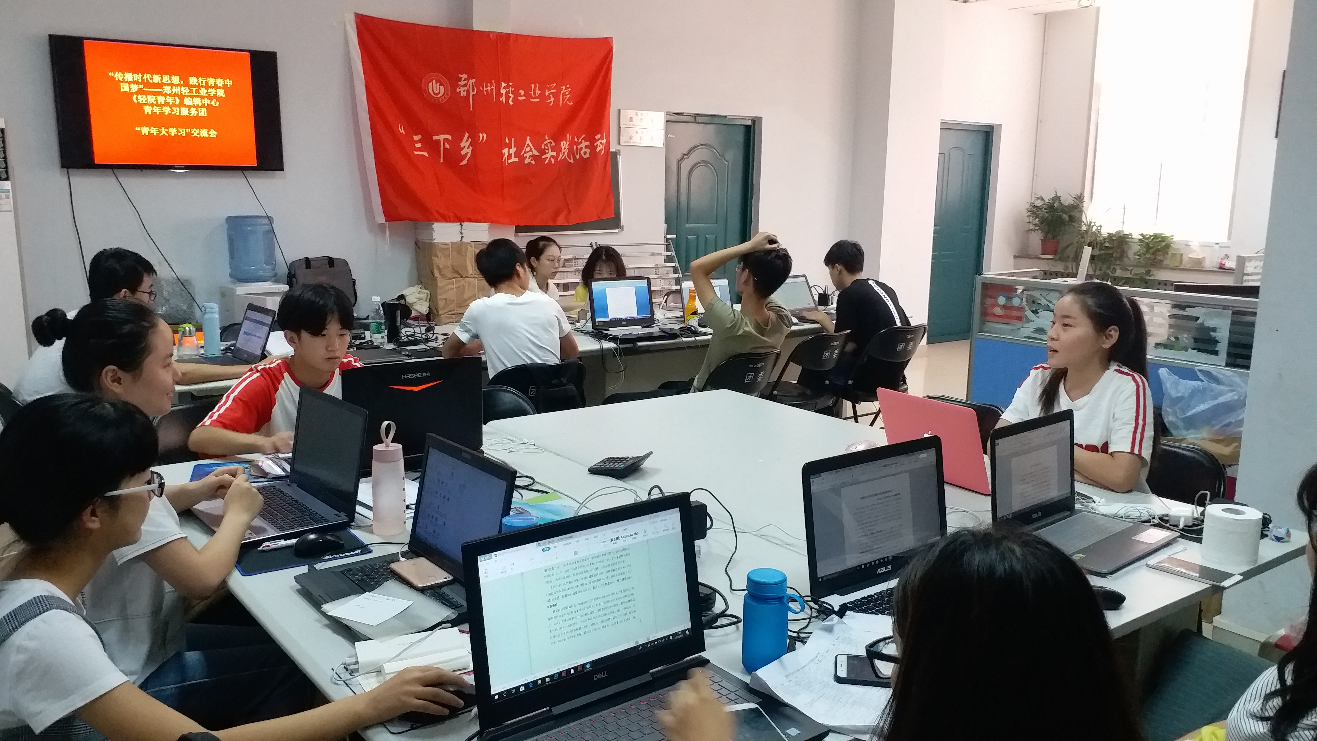 为贯彻落实习近平总书记对青年提出的殷切期望,激发青年学生的爱党爱国情怀,培养青年学生的责任与担当,引导青年学生深入了解“三下乡”暑期社会实践活动的重大意义,8月2日下午,《轻院青年》编辑中心“传播时代新思想,践行青春中国梦”青年学习服务团在东风校区图书馆101室开展了“青年大学习”交流会,校团委办公室主任王银峰老师和服务团全体成员参加了此次活动。