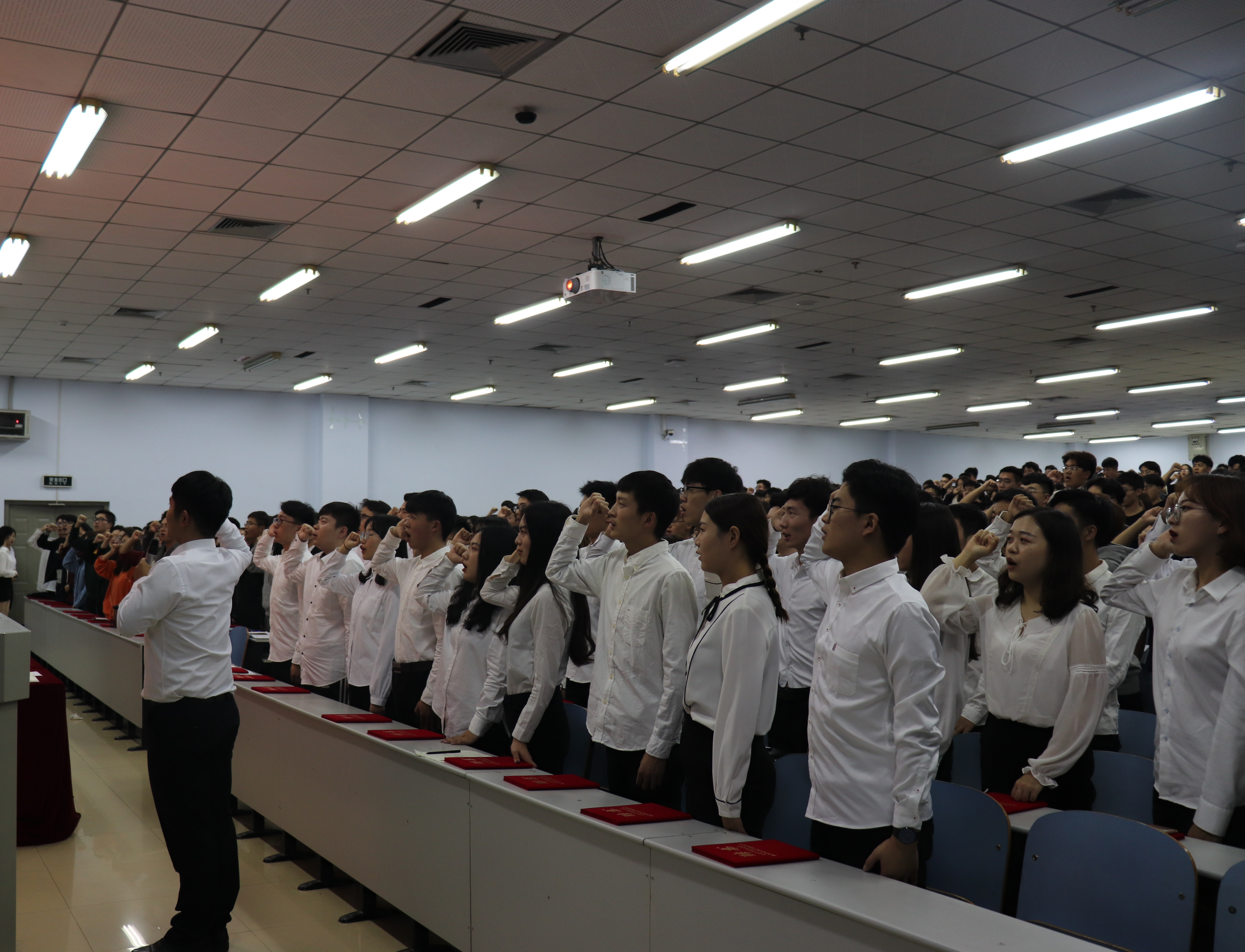 会上,李锐杰书记对2017-2018学年团学组织优秀学生干部进行了表彰,并宣布了本学年团学组织主要学生干部的任职决定,各位老师分别为他们颁发了荣誉证书和聘书。2015级优秀学生干部代表刘川松、周新垒、崔镔洁同学分享了自己三年来的工作感悟,希望所有的学弟学妹们能够坚守初心,不辜负学生干部的称号;2016级学生干部代表杨贵忠、杜淳熙和杨正浩汇报了学生组织上一年度的工作情况,并做出新学期的工作计划。张瑞凤老师对近期的重点工作进行了部署,要求学生干部们深入学习贯彻河南三大精神,关键节点冲得上,敏感事件站得住,困难面前顶得上。最后,李书记充分肯定了上一年度各项学生工作取得的成绩,对学生干部的辛苦付出表示感谢。针对新闻中出现的“学生组织官僚风气盛行”的情况,要求全体学生干部牢牢树立为全体学生服务的意识,辨是非,担责任,懂感恩,处处起模范带头作用。全体学生干部大会在庄严的宣誓中圆满结束。