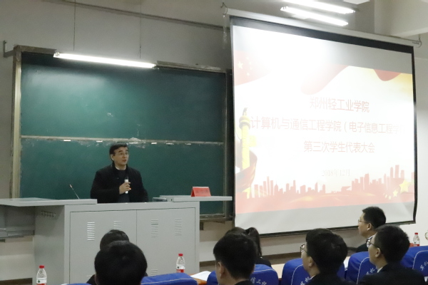 为进一步加强我校基层学生会组织建设,为共青团、学生会组织改革和学校发展提供坚强的青春力量。12月1日, 郑州轻工业学院计算机与通信工程学院(电子信息工程学院)第三次学生代表大会在计算机楼217隆重举行。学院党总支书记黄道颖教授、校学生会副秘书长张健、分团委书记沈高峰、学工办主任司丽娜、全体专兼职辅导员老师和全体学生代表200余人参加此次大会。大会由学院辅导员杜明明主持。