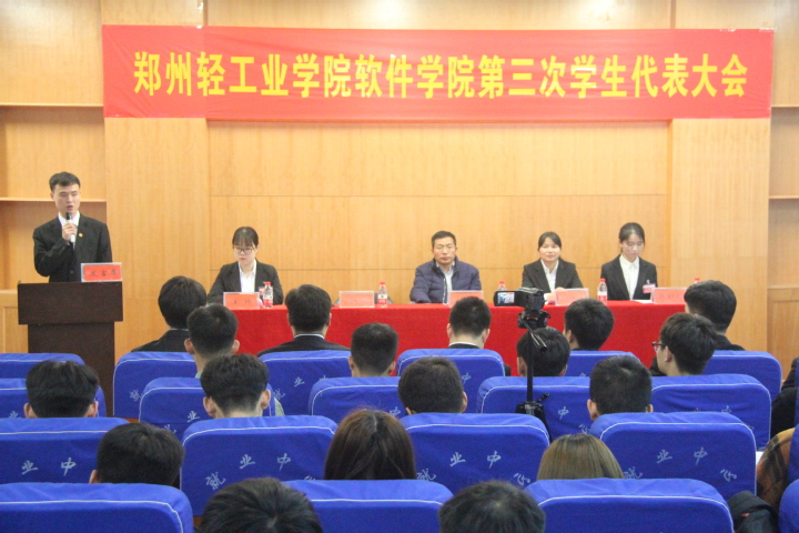 2018年11月30日,郑州轻工业学院软件学院第三次学生代表大会在科学校区大学生活动中心113室隆重召开。学院党总支书记武丰龙、分团委书记刘放美、校学生会主席段子文及学生代表等参加了会议。