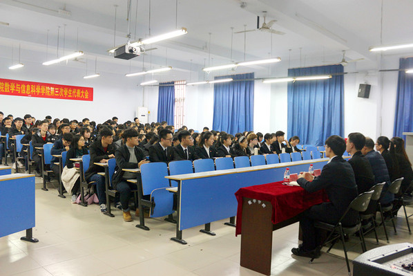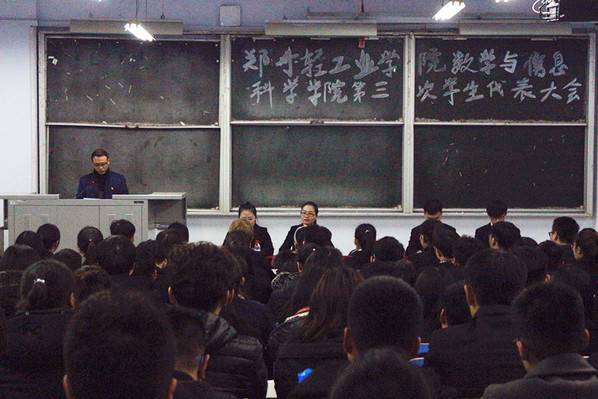 12月5日中午,郑州轻工业学院数学与信息科学学院第三次学生代表大会在东一楼218教室隆重召开。数学与信息科学学院党总支书记郭伍常、校学生会主席段子文、分团委负责人张智勤及全体学生代表出席了本次会议。