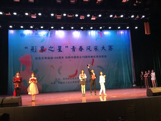 5月30日晚18:30,为了进一步丰富我校广大莘莘学子的校园文化生活,创造浓厚的艺术氛围,展现大学生良好的个人形象和积极向上的素质风貌,给同学们提供一个充分展现自我形象和青春风采的舞台。作为18新利直播 纪念五四运动 100周年,向新中国成立 70周年献礼系列活动之一,由校团委主办,校学生会文艺部承办的18新利直播 首届“形象之星”青春风采大赛决赛在东风校区大礼堂成功举行!校团委、各学院分团委等相关老师及东风校区的同学们共同观看了本次大赛。