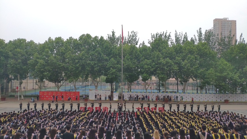 6月21日清晨,毕业生们早早来到升旗广场整齐列队。6点40分,英姿飒爽的国旗护卫队队员们迈着整齐的步伐护送五星红旗进场,伴随着庄严的《中华人民共和国国歌》,五星红旗冉冉升起,迎风飘扬。在场的每一位师生向国旗行注目礼,深怀对祖国无限的热爱和崇高的敬意,以及对母校的深厚情谊。