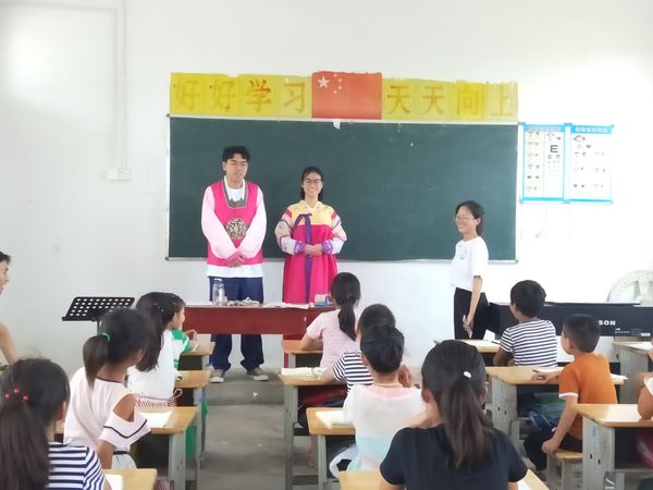 外国语学院七彩梦教育关爱小分队师生一行来到泌阳县泰山庙镇,围绕“传递教育爱心,让贫困留守儿童全面发展”的主题开展志愿实践活动。队员们积极备课,根据所学知识给当地学生提供了多样的特色课程。其中,美术剪纸课旨在调动学生们的积极性、开发丰富的想象力、提高动手能力。音乐、体育、武术课同时开展,希望给留守儿童一个德智体美劳全面发展的童年。最具特色的韩国文化体验课和吟诵课受到同学们的广泛欢迎,前者带领同学们走入一个全新的世界,感受不同的文化,后者则以独特的方式传诵我国文学经典。小分队在传授文化知识的同时强化了孩子们的自我管理能力,填补了暑期乡村儿童教育的空白,为孩子们孤寂的留守童年增添了一抹色彩。这次实践活动受到当地家长和学校的大力支持,队员们也充分发挥志愿服务精神和文化综合素养,期盼每一位小朋友都加倍珍惜学习机会,早日成为对祖国、对社会有用的栋梁之才。