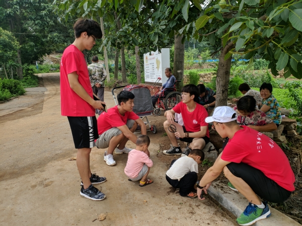追寻红色足迹,学习革命先烈精神。深入了解扶贫情况,唱响扶贫凯歌,队员们首先来到汝州市豫西抗日纪念馆。参观馆内陈列的抗战物品并听讲解员讲述抗日时期革命先烈的艰苦奋斗历程。随后前往邢窑村,邢窑村地处深山,交通不便,是比较贫困的村庄,队员们首先访问了邢窑村村支部书记邢伟和扶贫主任郭书洋,通过与他们的交流,了解到精准扶贫这条路上的艰辛,以及实施精准扶贫以来给贫困人民生活带来的巨大变化。为了更好地了解精准扶贫的情况,队员们对当地村民的生活状况进行了走访调查。此外,队员们还前往老党员邢老先生家中进行慰问,听他讲述自己的红色故事,临走时老先生对队员们提出了寄语,希望他们可以珍惜现在的幸福生活,尽自己的力量为人民多做事,做实事。