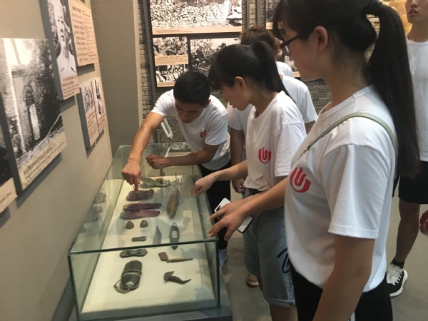 7月15日上午,队员们来到了巩义市新中镇八路军豫西抗日纪念馆。走进纪念馆,大家怀着沉重的心情参观了豫西沦陷、挺进豫西、抗击日寇、红色曹沟、走向胜利、风云人物、情系豫西和铭记历史八个展区。大量照片、文物、绘画和文字深刻揭露了侵华日军的滔天罪行;同时一幅幅照片,一件件文献资料带领大家回顾了豫西抗日根据地军民同仇敌忾、浴血奋战的恢弘历史。
