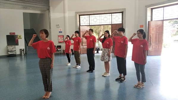 敬献纪念花篮,缅怀革命烈士。7月15日,观摩团一行抵达彭雪枫纪念馆,在庄严肃穆的氛围下,观摩团一行向彭雪枫将军敬献寄托着无尽哀思与敬仰的花篮。面对烈士雕像和鲜艳的党旗,队员们在领誓人刘捷老师的带领下,重温入党誓词,感受到了共产党员们用生命守护的信仰。