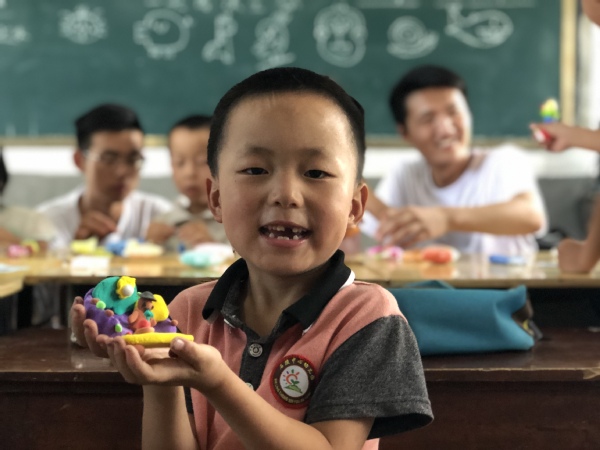 拓展综合素质,开发动手能力。手工课堂上,队员们一对一教孩子们手工制作,孩子积极参与并乐在其中。小队成员耐心指导,孩子们互帮互助,共同创作手工作品。创作完成后,孩子积极展示自己的作品,“哥哥姐姐教了我,我自己做的”,脸上洋溢着幸福与满足。