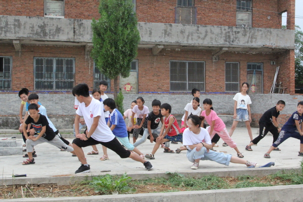 生活常识与体育锻炼。孩子的成长需要全面发展,为此团队准备了地理常识课、安全教育和户外拓展课程。队员运用生动的语言对经纬度、赤道和著名山川河流等地理常识做了全面的解释,并以视频形式对孩子们进行了安全知识教育,使孩子们掌握了家庭用电用火和防拐卖的要领。在阳光下,队员们带领孩子们进行户外体育锻炼。队员一遍遍分解太极拳的招式和轮滑的基本动作要领,对孩子们手把手教学。