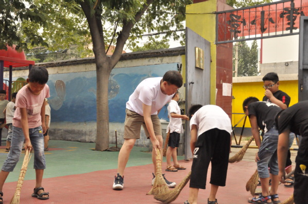呵护孩子,小事大爱。世界上并不缺少爱,只是缺少发现爱的眼睛。低年级的孩子们十分调皮,经常会因为一些小事争得面红耳赤,但遇到困难时孩子们会齐心协力解决问题。担任各班班主任的队员们每天都会去检查班级公共区域的卫生状况,孩子们每天也会早早来到学校,自觉打扫卫生。队员们时刻都在关注着每位学生,有孩子受伤时,及时出现在他们身边,并细心地清洗包扎伤口。这些小小的举动,无不透露出了队员们对孩子们发自内心的关爱。