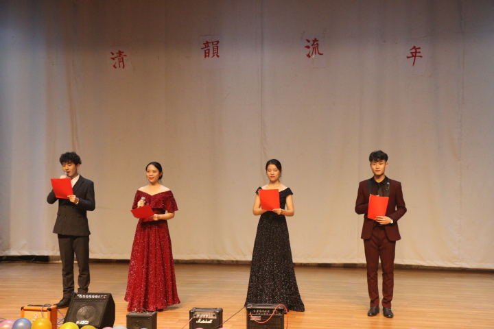 10月13日晚19:00,我校在科学校区三教楼208室成功举办“清韵流年”庆祝新中国成立七十周年爱国歌曲联唱暨校园优质歌曲展演,这是一场洋溢着浓厚青春气息与爱国情怀的视听盛宴,演出由校团委主办,大学生艺术团声乐团承办,相关老师及各学院同学们一起观看了本场演出。