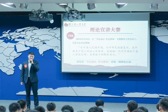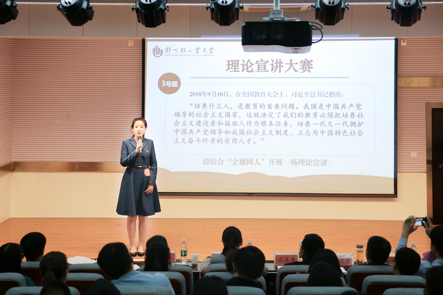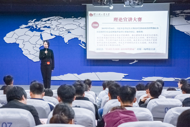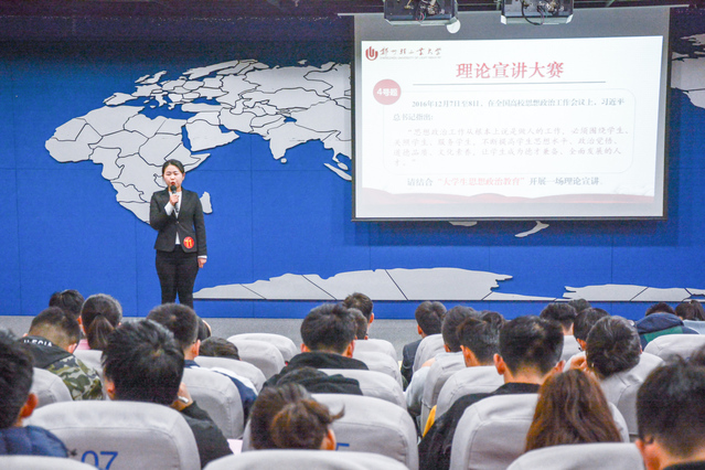 理论宣讲大赛主要考察参赛选手对马克思主义理论、习近平新时代中国特色社会主义思想、党的十九大精神、全国高校思想政治工作会议、全国教育大会和学校思想政治理论课教师座谈会精神等方面的学习宣传阐释能力,以及开展大学生理想信念教育、中国特色社会主义和中国梦宣传教育、社会主义核心价值观教育过程中的理论阐释能力,注重理论宣讲的政治性、理论性、政策性、导向性。参赛选手采用抽题的形式确定宣讲主题,宣讲时间限时5分钟。