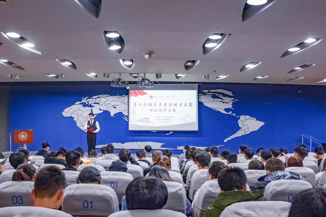 11月22日下午,我校第七届辅导员素质能力大赛预赛阶段的理论宣讲大赛在我校东风校区图书馆报告厅、教二楼东一阶同时举行,在预赛阶段前期的基础知识测试和网文写作比赛环节表现突出的16个学院35名辅导员参加比赛。本次大赛由党委学工部主办,国际教育学院承办,学工部(处)有关负责同志及相关人员、学院党总支副书记、专兼职辅导员代表和东风校区各学院的学生代表共300余人参加了此次活动。