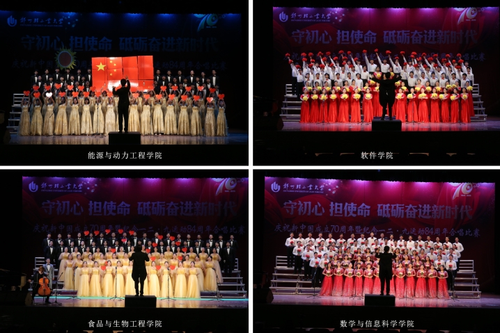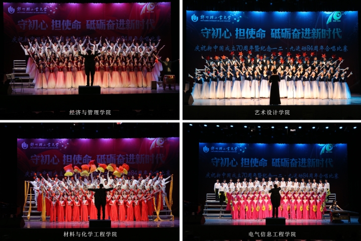 来自全校16个学院近1500名师生用最嘹亮的歌声和最浓厚的爱国情怀,牢记革命历史,缅怀峥嵘岁月。《我爱你,中国》、《歌唱祖国》、《我和我的祖国》、《爱我中华》、《祖国颂》等一首首经典曲目轮番登场,嘹亮的歌声歌颂了对祖国的赞美与热爱,唱响了轻工大学子奋进新时代的斗志与信心。《保卫黄河》、《红旗飘飘》、《在灿烂的阳光下》、《在希望的田野上》、《光荣与梦想》等脍炙人口的歌曲,唱出了轻工大人努力承担振兴中华历史使命的壮志雄心与无畏担当,一首首歌曲将合唱比赛推向一个又一个高潮。