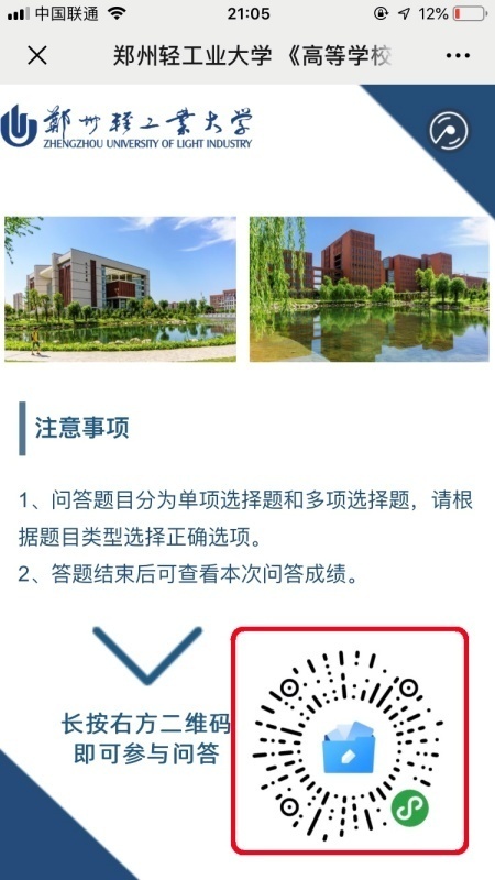 3.滑动H5界面到第二页,了解答题注意事项,长按右下角二维码识别后进行答题;