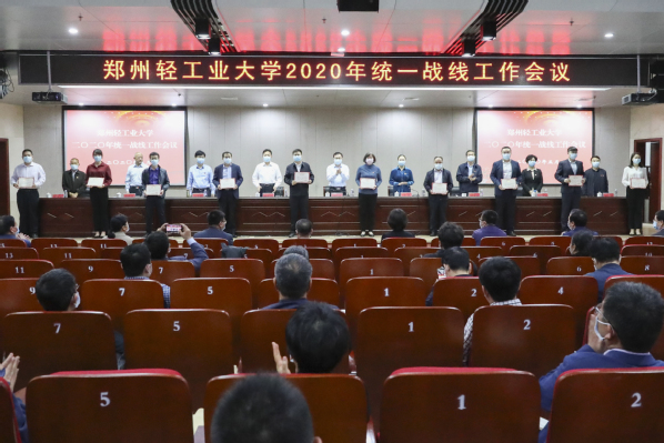 校党委副书记张志坚宣读了《关于表彰2018-2019年统一战线工作先进集体和先进个人的决定》,校领导为受到表彰的机关党委等8个先进集体和王永强等10名先进个人代表颁发了奖牌和证书。校党委副书记马英对2019年统一战线工作进行了回顾总结,并对2020年统一战线工作进行了安排部署。