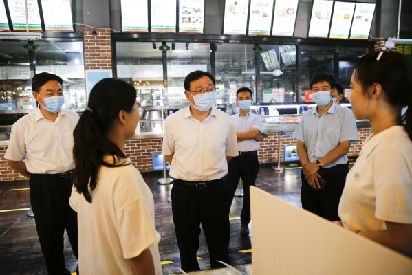校领导在食堂与返校学生亲切交谈