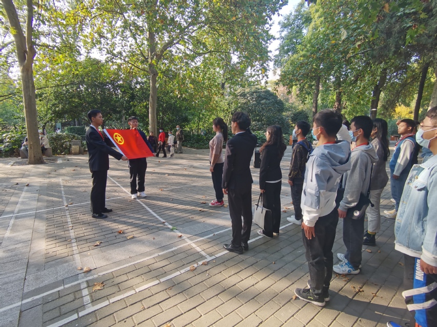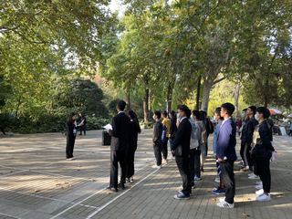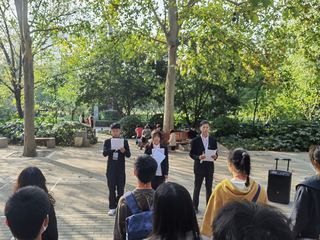 活动伊始,同学们前往碧沙岗公园北伐阵亡将士纪念碑进行参观学习。纪念碑上北伐将士的浮雕、聂荣臻将军“北伐阵亡将士永垂不朽”的题词以及镌刻的阵亡将士纪念碑碑文,吸引同学们驻足观看,深切表达了对牺牲革命将士的哀思。随后,张政铎同学从理论维度、历史维度和现实维度等方面对抗美援朝进行详细解读,引导同学们更加深刻地了解抗美援朝战争的时间、背景以及志愿军战士保家卫国的感人事迹,真正领悟到抗美援朝战争胜利的意义与影响,激励同学们铭记历史,珍爱和平,不负先辈重托,坚定理想信念,以青春之我、奋斗之我,弘扬和继承伟大的抗美援朝精神。