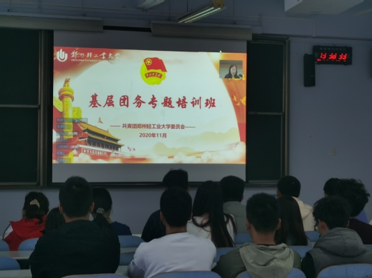 校团委组织部主任杨阳老师作了题为《凝心聚力强基固本不断推进团的基层组织建设》的专题讲座。杨老师分别从“共青团指导思想”“共青团基础知识”“‘工作到支部’建设方案”“主题团日活动工作指引”“智慧团建系统”五个方面来为大家讲解了基础团务工作。尤其重点讲述了习近平青年工作思想、全国学联二十七大精神、“工作到支部”建设方案,使各年级团支书更加清楚如何开展支部建设。杨老师简要讲解了“智慧团建”系统的重要性,并对如何注册管理员,如何录入团员团干部信息等基础操作进行了说明。培训班上,我校十佳红旗团支部团支书赵繁森同学以“做合格的团支书 建设凝聚力强的团支部”为题给大家做了分享,介绍了团支部建设中的经验,希望各团支部能用好新媒体平台,切实提升团支部活力。培训班特别设置了交流环节,与会同学就如何做好一名团支书进行了交流分享,使大家更加明白此次培训班开展的意义。