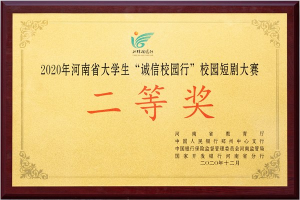 12月16日,2020年河南省大学生“诚信校园行”校园短剧大赛决赛在洛阳举办,我校选送的剧目《星火的力量》从全省高校176个参赛剧目中脱颖而出,与其它高校的14个剧目进入了决赛,最终荣获二等奖,经济与管理学院姚少华被评为优秀指导教师,学生资助管理中心马瑞静被评为优秀导演,经济与管理学院郝勇强同学被评为优秀演员,学校获得“优秀组织奖”。教育部学生资助管理中心副主任陈淑梅、河南省教育厅二级巡视员吕冰、国家开发银行河南省分行副行长张驰、河南省财政厅教育事业处处长陈静等领导观看了此次比赛并为获奖队伍颁奖。