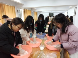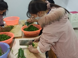 当天上午,大家齐聚指定地点,开始忙碌起来。和面、擀皮、包饺子,大家分工协作,动作娴熟,有条不紊,纷纷使出看家本领,揉面、擀皮、包饺子一气呵成,活动现场欢声笑语,热闹非凡,大家忙得不亦乐乎,好像一家人一样其乐融融。园区楼管老师也积极参与其中,给予亲切的指导。经过两个多小时的努力,包出了一排排独具特色的饺子。经过后续加工,一盘盘热气腾腾的饺子出锅了,大家吃着自己包的饺子,每个人的脸上都洋溢着节日的喜庆。本着节约粮食不浪费的原则,剩下的食材和饺子馅也被同学们物尽其用,变成了一道道精美的菜品:醋溜白菜,凉拌木耳,油炸小丸子......在饺子煮好之后,由园区团工委的同学为代表,打包同学们的满满心意,为宿管老师送去一份热腾腾的饺子,感谢宿管老师对广大同学的照顾和包容,为同学们打造一个家一般温暖的学生公寓。大家纷纷表示:通过此次活动,感受到了学校的关怀、节日的温暖,也感受到了我国传统文化的浓厚氛围。