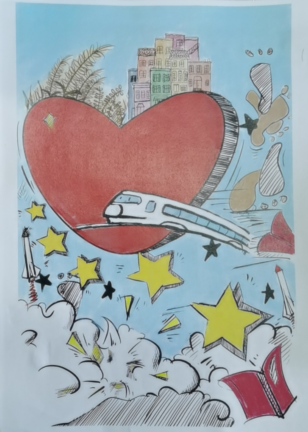 一幅幅画作见证乡村振兴的壮丽篇章,一张张照片定格奋斗脱贫攻坚的生动场景。物理与电子信息工程学院王伟夙老师在作品《脱贫攻坚在全国》中,用镜头记录了脱贫攻坚中感人的形象、生动的瞬间。计算机与通信工程学院学生郭瑜鑫在《筑梦中国红》中描绘了中国高铁、中国制造、教育等助力脱贫攻坚,使乡村振兴驶入“快车道”,成就中国奇迹、中国速度,同心共筑中国梦。