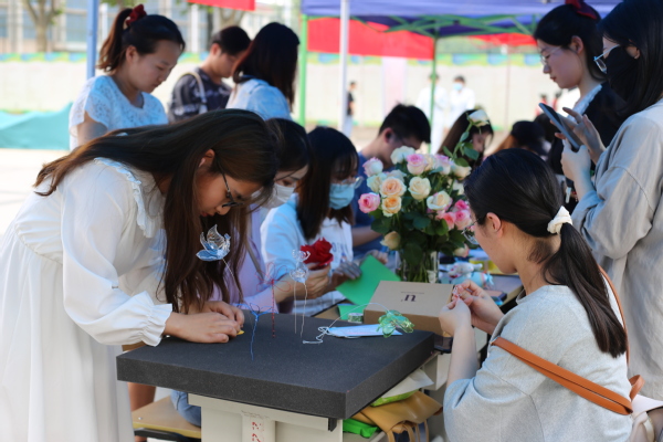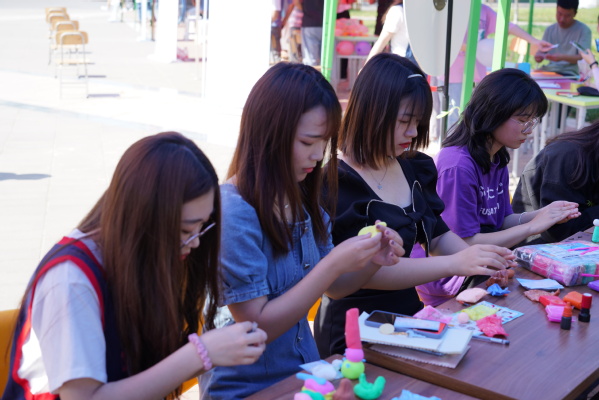 活动以朝气蓬勃的减压手指舞作为开场,吸引了众多学生驻足、加入。嘉年华中艺术表达类活动,如“创意泥塑”、“声临其境 音你而来”、“‘环’抱生活 ‘境’‘花’心灵 ”等轻松活泼,在享受艺术创作的同时引导学生释放压力、纾解心情;沟通交流类活动,如“移花接木”、“音乐传递”“你抛我接”等增进同学们之间的交流,鼓励他们敞开心扉,传递浓浓情谊;体验感悟类活动,如“转盘大挑战”“终极密码”等或引导学生关注自己的优点,或鼓励学生对爱做出表达。