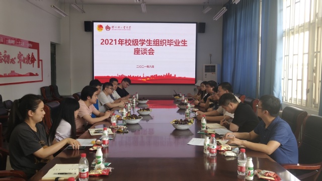 毕业钟声即将敲响,为更好地了解、关心毕业生离校前的就业心理动态,有效听取毕业生对母校的寄思和对团学工作的建议,切实将“我为群众办实事”实践活动融入到毕业生离校最后一程,校团委于6月15日、18日分别在东风校区图书馆第三会议室、科学校区活动中心207召开2021届校级学生组织毕业生代表座谈会。校团委全体老师、校级学生组织毕业生代表参与了座谈会。