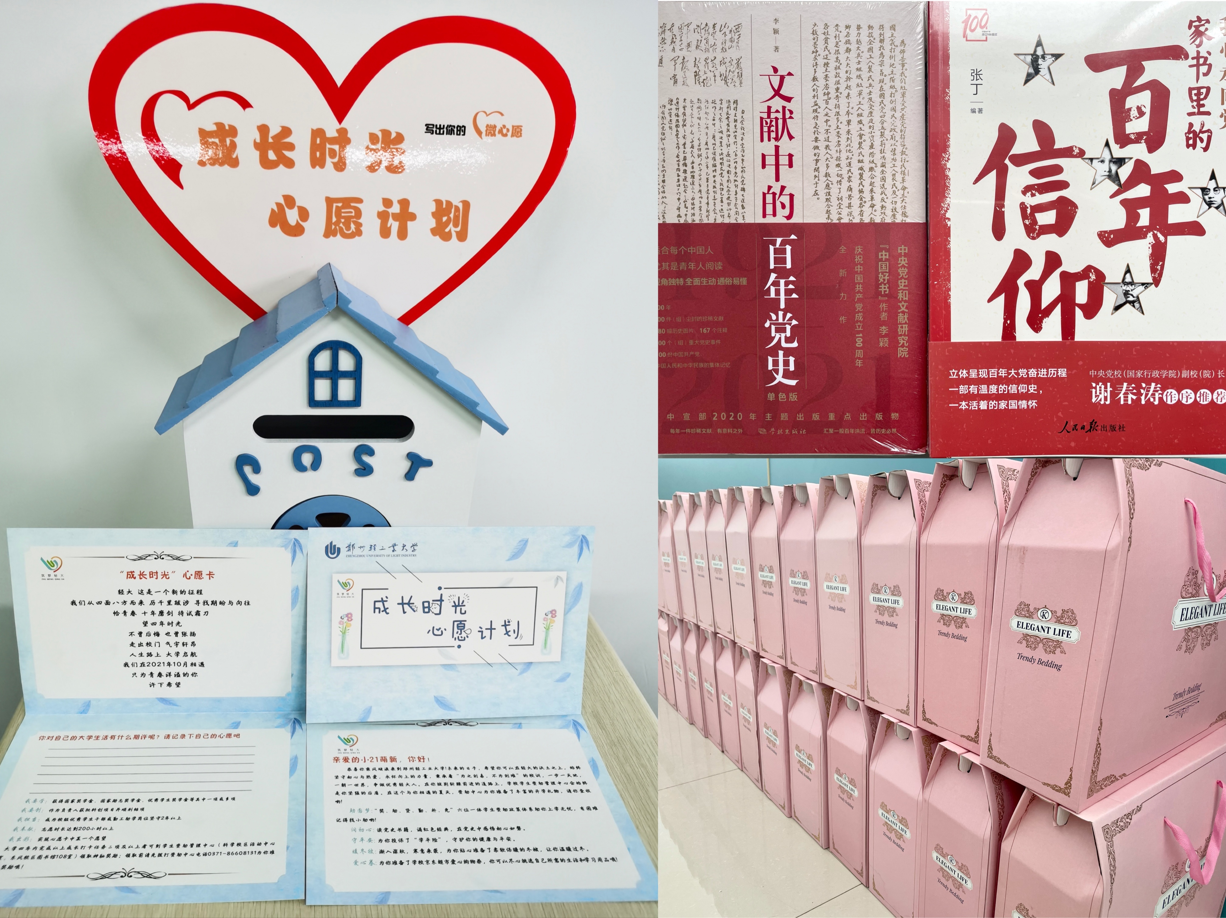 迎新期间,学校开通了“绿色通道”,及时为学生答疑解惑、排忧解难,并向家庭经济特别困难新生赠送了一系列暖心的开学礼物---线上商城“爱心礼包”、“成长时光”心愿计划、“守护平安”学平险、党史学习书籍、爱心冬被等。其中,“爱心礼包”由学生自主在线上商城挑选所需的学习和生活用品,学校逐一打包为学生“一对一”送到宿舍;“成长时光”心愿计划由学生列出大学期间的成长目标,学生资助管理中心将根据学生心愿达成情况及时给予激励。