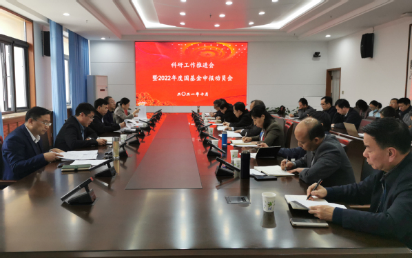 方少明做总结讲话,他首先对我校2021年度各项科研工作特别是在军民融合平台、省厅级各类人才项目和奖励数量、横向经费到账等方面取得的成绩给予充分肯定,重申了国家自然科学基金对学校人才培养、科研团队建设、学科发展和科研地位的重要意义,要求大家在新的发展阶段,凝心聚力砥砺前行,乘风破浪再创佳绩。最后,他对2022年度国基金申报工作提出了几点要求:一是高度重视,精心组织,二是明确目标,层层落实;三是精读指南,把握政策;四是广泛联络,建立联系,确保2022年度国家自然科学基金申报能有新突破。(通讯员:孟颖辉)