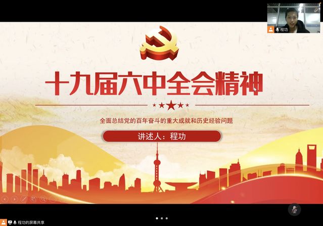 2021年11月8日至11日,中国共产党第十九届中央委员会第六次全体会议在北京召开。党的十九届六中全会全面总结党的百年奋斗重大成就和历史经验,形成了《中共中央关于党的百年奋斗重大成就和历史经验的决议》。全会结束后,我校学生会组织响应党中央的号召,按照团中央统一部署,积极发挥政治引领作用,在同学中广泛开展专题学习,掀起学习热潮。12月15日晚上19点,18新利直播 学生会召开视频专题会议集中学习领会党的十九届六中全会精神。青年讲师团成员、学生会指导老师杨阳和校学生会全体工作人员参加会议。