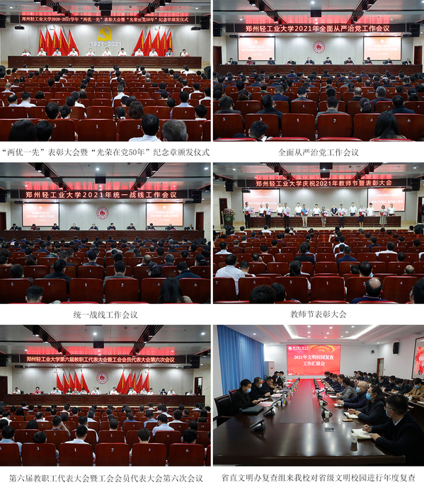 学校召开思想政治工作会议、党内表彰会议、全面从严治党会议、统战工作会议和教师节表彰会议,交流工作经验,表彰先进典型,安排部署工作,学校领导班子连续8年被评为“好班子”等次。1个基层党委获河南省脱贫攻坚先进集体,1个党支部获河南省先进基层党组织,5个基层党组织获河南省高校先进基层党组织。学校在省级文明复查工作中取得优异成绩,微博首次突破全省高校微博影响力前十位,荣获“河南省教育系统新媒体账号最具成长力机构”称号。学校被授予“全省统战工作成绩突出单位”“河南省高校统战工作示范单位”称号。推进校内政治巡察,开展落实中央八项规定精神和制度执行专项治理,做实做细日常监督,压实管党治党责任,巩固拓展风清气正政治生态。学校第六届教职工代表大会暨工会会员代表大会第六次会议审议通过了《学校“十四五”事业发展规划》,描绘了学校发展新蓝图。河南省人大副主任徐济超一行来校检查指导高等教育法贯彻实施情况。