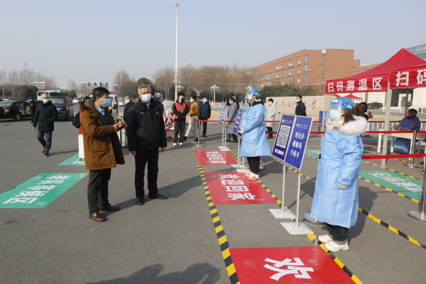 校领导先后来到校门疫情防控点、核酸检测点、学生宿舍、食堂等地点,与返校学生亲切交谈,关切询问返校方式、防护措施等情况,叮嘱他们要注意加强返校后的个人防护,保持良好心态,积极配合学校做好疫情防控工作,返校后尽快进入状态、刻苦学习、积极实践、实现梦想。在与工作人员交谈时,校领导详细询问工作流程、休息就餐、学生报到、值班值守等相关情况,对工作人员坚守岗位、担当作为的敬业精神和奉献精神给予了充分肯定,并向坚守在疫情防控一线的同志们表示慰问和感谢,叮嘱大家要严格执行防疫规定,从严从细落实防控措施,切实做好学生返校工作,同时也要保重身体、做好防护。
