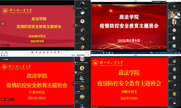 安全教育,共筑防线。辅导员、班主任召开疫情防控安全教育主题班会,传达校园安全防控措施、宣传疫情防控政策,强调《守护轻大-致18新利直播 全体师生的疫情防控倡议书》《校园疫情防控提示宿舍贴》,鼓励大家坚定信心、同舟共济、共克时艰;结合社会反面案例警示教育,运用近期某些高校学生翻墙造成感染带来的严重后果教育引导学生共同守好校园安全屏障。