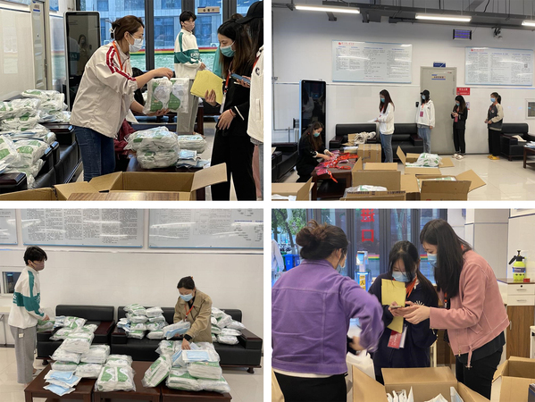 为了保障每一位学生防疫物资充裕,筑牢自我保护第一道防线,辅导员们化身快递员、搬运工,不辞辛劳,搬运、发放一箱箱防疫物资。通过承载满满关切心意的防疫用品,送去来自学校和老师沉甸甸的爱意,用责任默默守护每位学生的“晴空”。