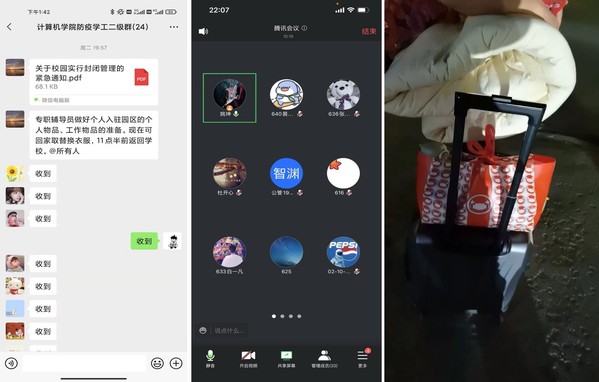 “老师,我手机坏了”“老师,我宿舍的灯掉下来了”“老师,我脚崴着了”“老师,我药快吃完了”……一条条求助信息,背后是一个个需要辅导员帮助的学生。在这段共同战“疫”的日子里,辅导员们纷纷化身为“信息员”“跑腿员”“协调员”“快递员”,他们带着学生的信任,出现在学生最需要的时刻,给学生无微不至的关心和爱护。