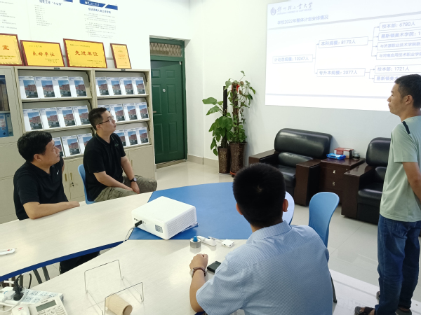 黄荣杰在听取汇报后,对我校招生录取前期各项工作给予肯定,对招生工作人员坚守工作岗位表示感谢。他强调,招生工作社会关注度高,关系考生切身利益,全体工作人员要严格遵守招生录取规定,严明招生纪律,确保招生录取工作安全平稳。同时要以社会需求、毕业生就业为导向,进一步做好数据分析,为学校学科建设、人才培养等工作提供有力支撑,使招生工作在学校高质量发展进程中发挥更大的作用。