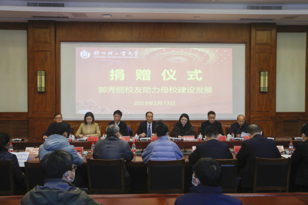 魏世忠简要介绍了学校近年来的发展情况,对郭秀丽校友的慷慨捐赠表示由衷感谢,对其在自身事业发展的同时热心校友工作,襄助母校建设的反哺之举表达诚挚敬意,并高度赞扬郭秀丽校友在公司创立发展过程中卓越的战略眼光和不断探索的创新精神。他表示,这次捐赠活动,给母校带来的不仅是物质上的馈赠和帮助,更重要的是精神上的支持和鼓舞,学校将持续实施人才与科技强校战略,立足四个面向,推进一流学科建设,积极服务国家和地方经济社会发展。他表示,校友是母校最为宝贵的精神财富,是母校事业发展最坚实、最可信赖的力量,校友令人瞩目的成就,成为学校立德树人的生动教材,鼓舞着学子们拼搏向上、奋斗成才。学校历来重视校友工作,将着力推进校友会建设,全面加强与校友的合作,不断开创校友工作新的局面。
