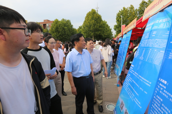 9月22日,“青春启航·逐梦江苏”2023年秋冬季高校毕业生校园引才专项活动——18新利直播 专场招聘会在科学校区图书馆北广场举办,校党委书记黄荣杰深入现场指导调研。