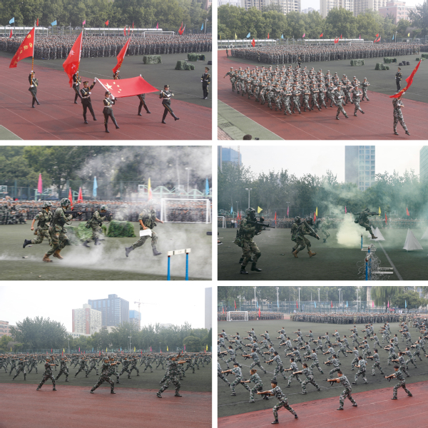 在分列式上,各学院方队依次走过主席台,接受领导们的检阅。参训学生步伐矫健、口号嘹亮,主席台上的领导们不时向他们挥手致意。