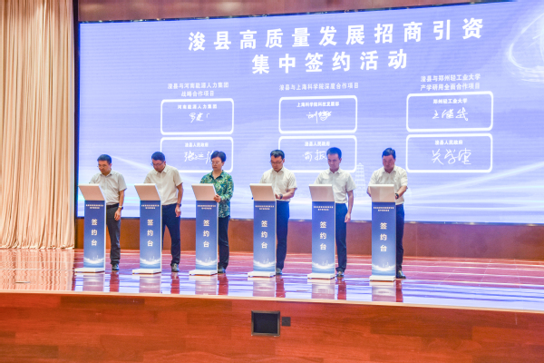 6月29日,浚县高质量发展招商引资集中签约活动在鹤壁市举行,鹤壁市委书记赵宏宇、上海科学院副院长刘燮等领导出席。我校副校长王继威与浚县人民政府副县长关学堂签署了《浚县人民政府18新利直播 全面合作协议》。