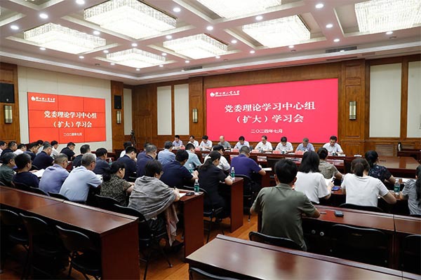 7月29日,学校在科学校区双创中心第一会议室召开校党委理论学习中心组(扩大)学习会,专题学习党的二十届三中全会精神。校党委中心组成员、相关职能部门负责人、二级单位党组织书记参加会议。校党委书记黄荣杰主持并讲话。