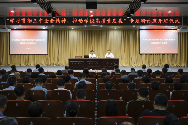 8月25日下午,学校中层领导人员“学习贯彻党的二十届三中全会精神、推动学校高质量发展”专题研讨班在科学校区图书馆学术报告厅开班。全体校领导、中层干部、党委讲师团和青年讲师团成员参加开班仪式。开班仪式由党委副书记杨新宇主持。