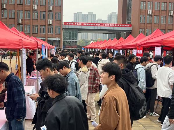 近日,由学校承办的“豫荐未来 青春启航”河南省2024年计算机类/人工智能类高校毕业生就业专场双选会在科学校区举行。校党委副书记杨新宇深入双选会现场指导工作,相关学院和部门负责同志陪同。