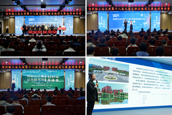 11月21日,学校第十八届大学生职业规划大赛金奖争夺赛在科学校区图书馆学术报告厅成功举办。河南省首届大学生就业指导名师、省高等学校教学名师刘筠,教育部全国万名优秀创新创业导师李金保,教育部优秀创新创业导师人才库专家蒋华勤与郑州大学、中原工学院、郑州航空工业管理学院等6位担任专家评委;奥克斯中央空调河南总经理孙永刚等5位企业代表担任企业评委,两校区500余名学生现场观看了比赛。校党委副书记杨新宇出席大赛并为获奖选手颁奖。