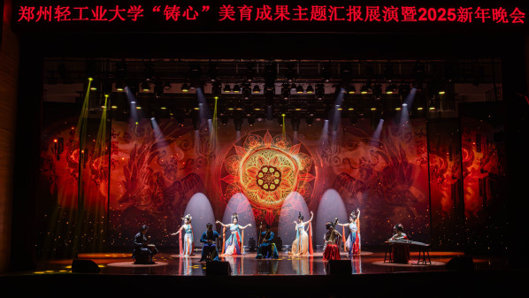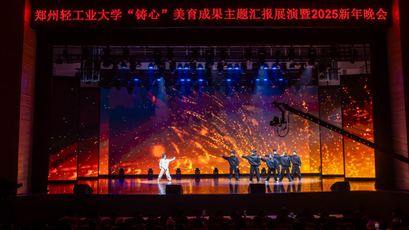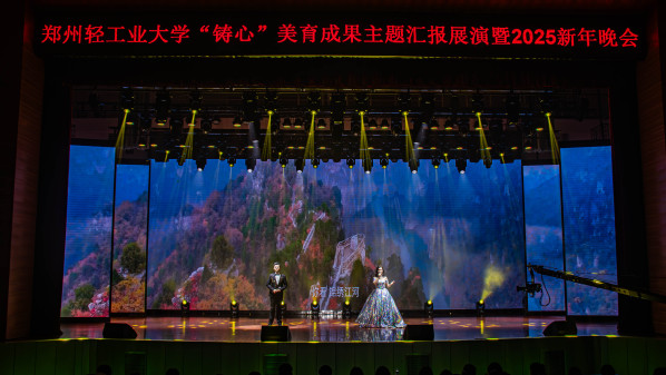 12月26日,由我校与河南卫视举办的18新利直播 “铸心”主题美育成果汇报展演暨新年晚会在东风校区大礼堂隆重举行。河南省教育厅体卫艺处处长舒卫方,校领导黄荣杰、魏世忠、杨新宇、张成、周立明、肖艳秋、王继威出席晚会,千余名师生员工代表在现场观看,广大师生、校友及社会各界人士近万人通过视频直播的形式观看了本场演出。
